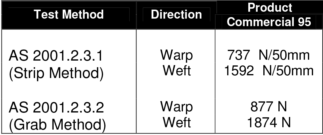 * This is based on the fabric having a gauge length of 200mm and elongation at break between 8% and 75%.